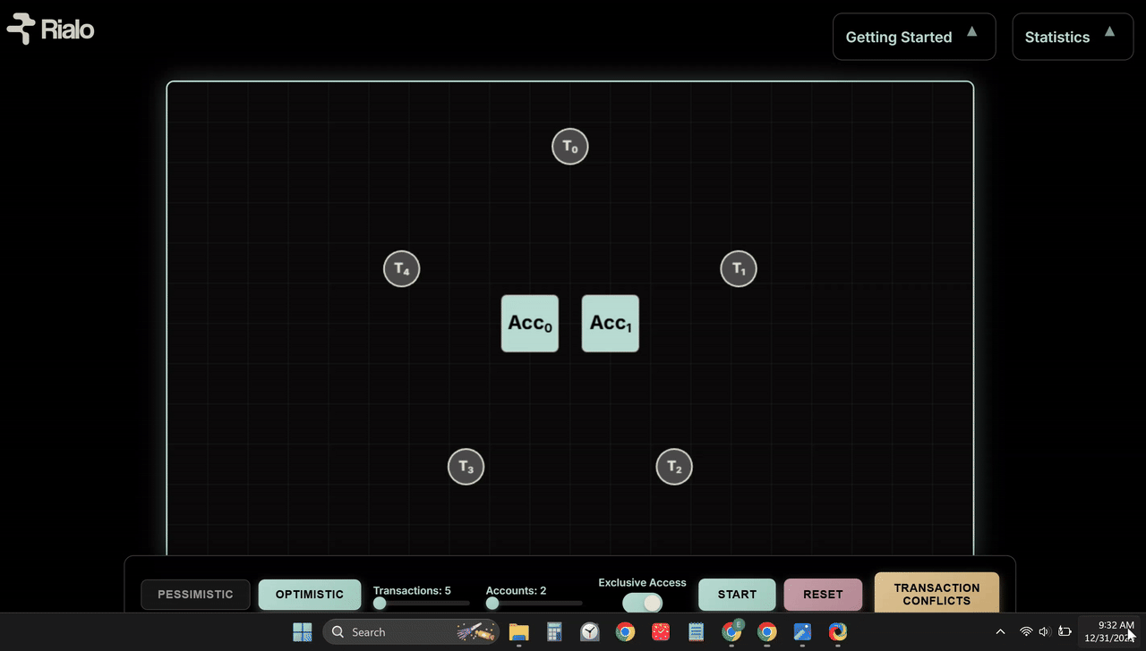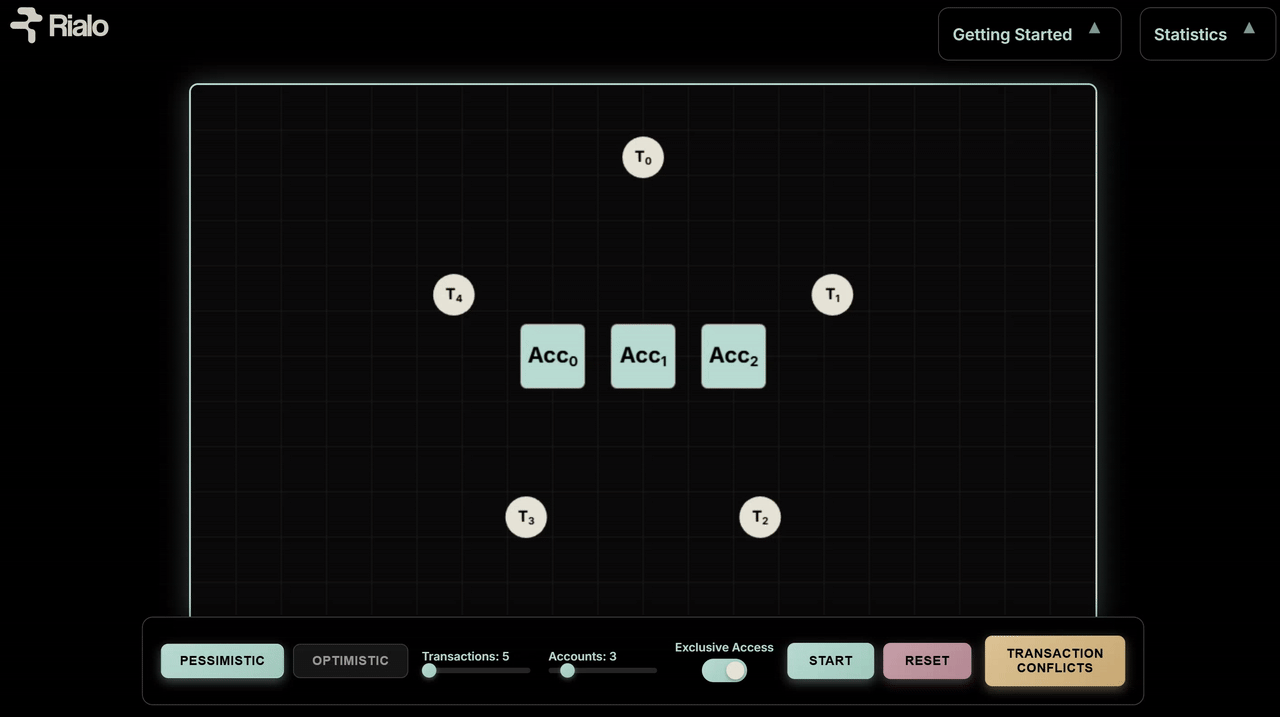 If you want an even deeper and more technical understanding of concurrency control, we are preparing a comprehensive deep dive that explores the topic in more depth and illuminates the underlying concepts behind each concurrency control design. For now, you can explore the demo and build familiarity with parallel execution. In the future, we will explore how Rialo uses optimistic execution to provide a high-performance execution environment for applications and guarantee the best possible experience for users.