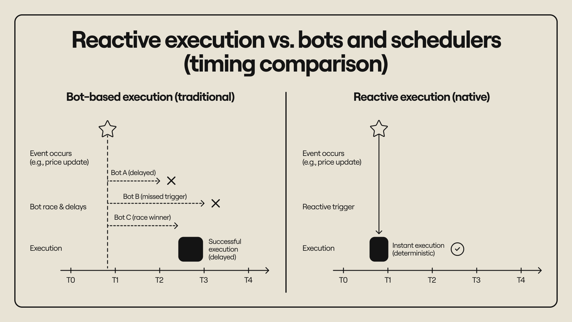 In the compound marginalization post, we described how different middleware layers impose independent costs and distort incentives. Automation systems, indexers, schedulers, and keepers each extract value and create misalignment. Reactive transactions collapse these layers into the execution environment itself. The result is simpler, faster, more coherent, and more aligned.