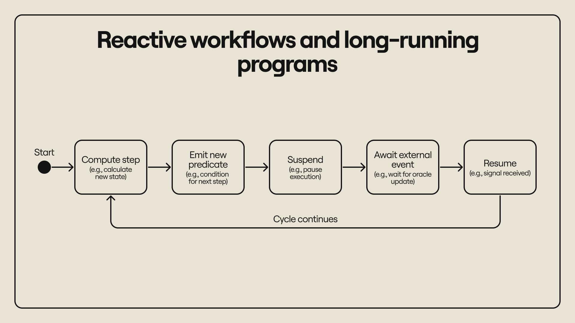 - Long-running processes that depend on both offchain and onchain state