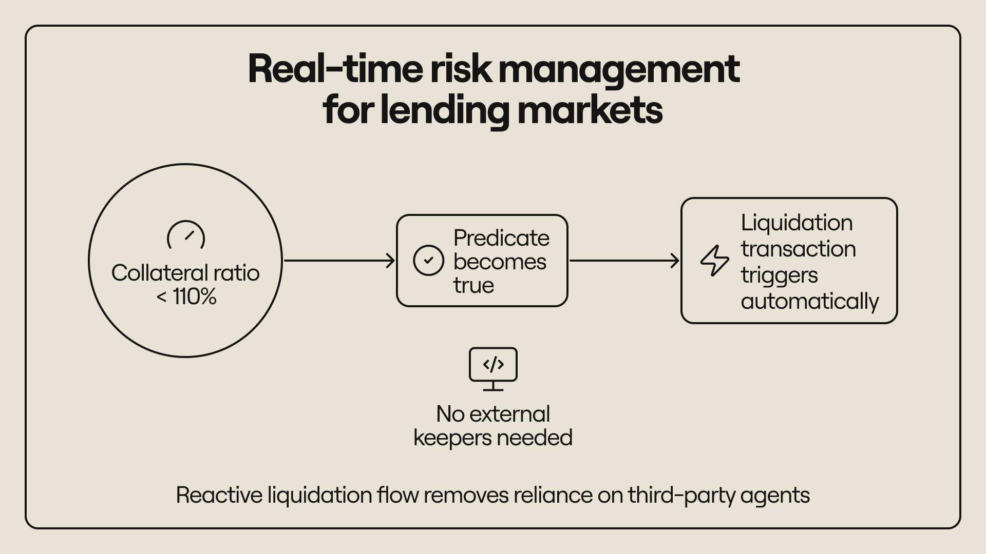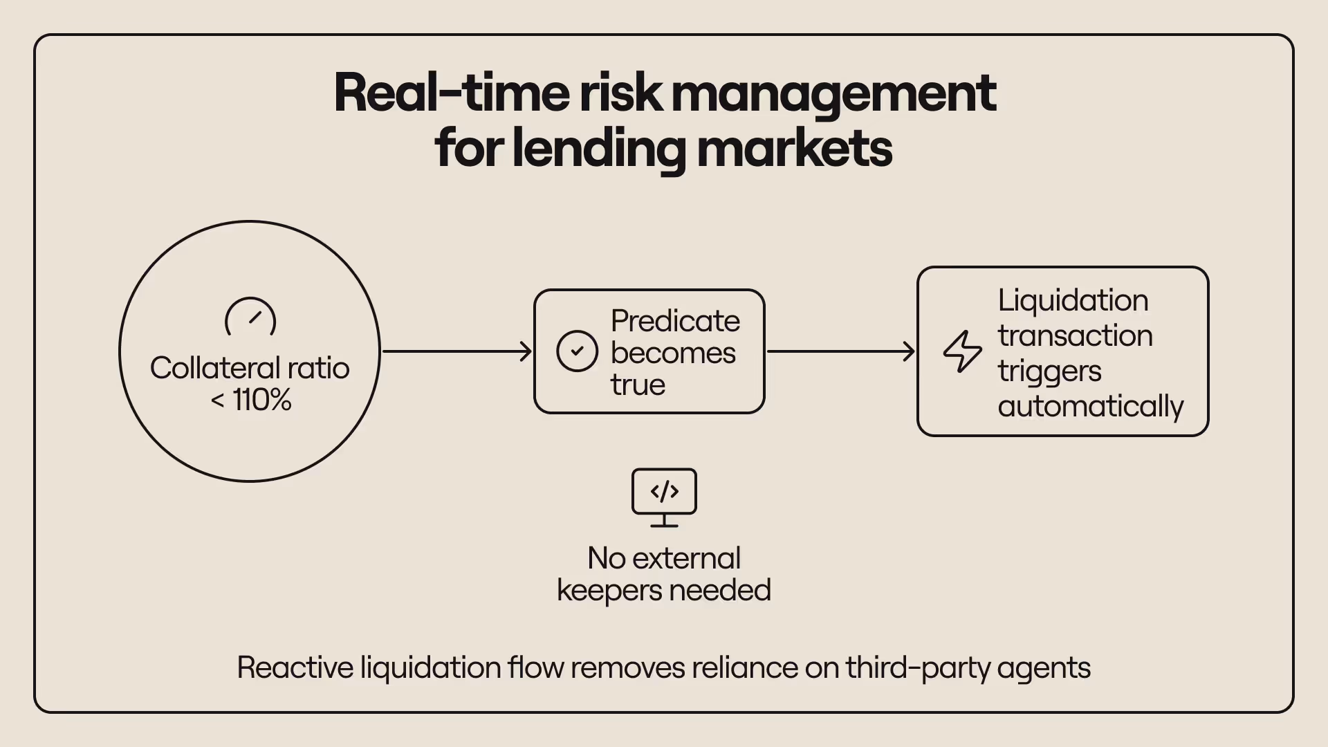 Perpetual markets require continuous updates to funding rates and rapid liquidation responses. Traditionally, these functions depend on centralized or semi-centralized keepers. With reactive execution, perp markets can be run efficiently without depending on centralized keeper protocols. Reactive execution supports: