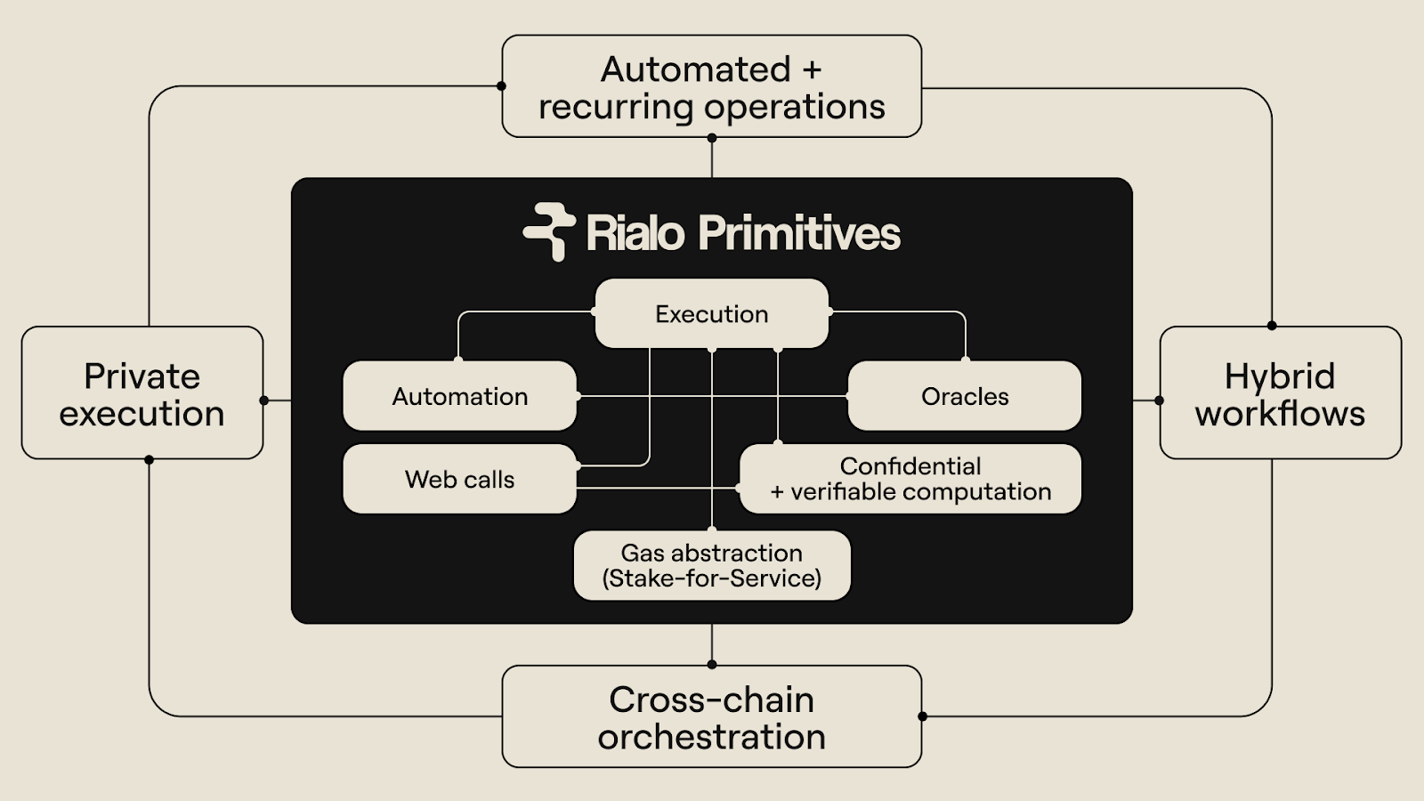 Each of the capabilities above emerges from the interaction between supermodular primitives that create new functionality when tightly integrated–none of them are standalone features. Automated and recurring operations, trust-minimized hybrid workflows, cross-chain orchestration, and private and confidential computation don’t exist because Rialo has native automation, native oracles, native web calls, verifiable computation, or native privacy in isolation. They exist because these primitives are composed in ways that compound value through added functionality and utility, and increase the system’s compositional power.
