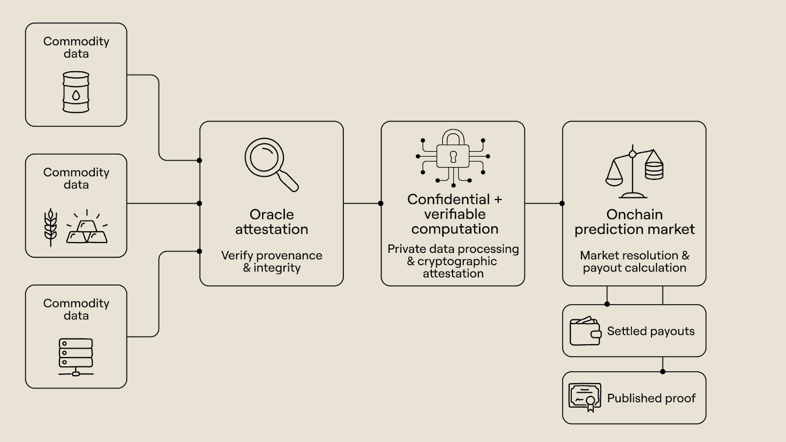- Verifiability: Financial applications that interact with external data (e.g., perps exchanges, RWA protocols, and other synthetic asset markets) need guarantees that the data was sourced correctly and that any computations performed on the data as part of the process satisfied validity conditions. Our shielded computing environment generated a cryptographically verifiable proof for every execution that produced a new dataset. By relying on cryptographic hardness, we eliminate the need for trust and guarantee trustless execution for high-value financial applications.