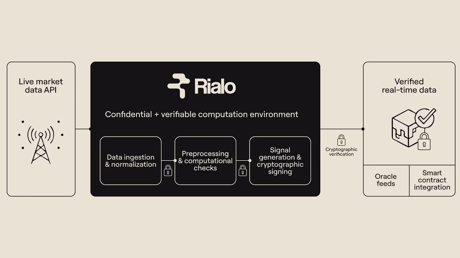 To illustrate the value of this integration, consider a prediction market that needs to resolve a weather forecast market securely. The protocol submits a list of sources to pull data from and instructs Rialo to compute the average of reported figures and use the result to settle the market. Rialo completes this flow and generates a proof that verifies the source of the information, confirms the integrity of the execution that produced the result, and determines final payouts.