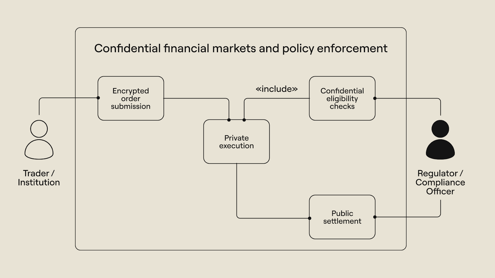 The same functionality can serve as the basis for more advanced and practical applications, such as private financial markets. Currently, users have to publish order information in the clear when trading onchain and risk getting frontrun or spied on. Rialo’s native privacy integration allows users to encrypt sensitive order information and have orders executed confidentially, such that only the final result is made public. This can make onchain finance more attractive to institutions and large trading firms uncomfortable with telegraphing trading intent when submitting transactions for processing.